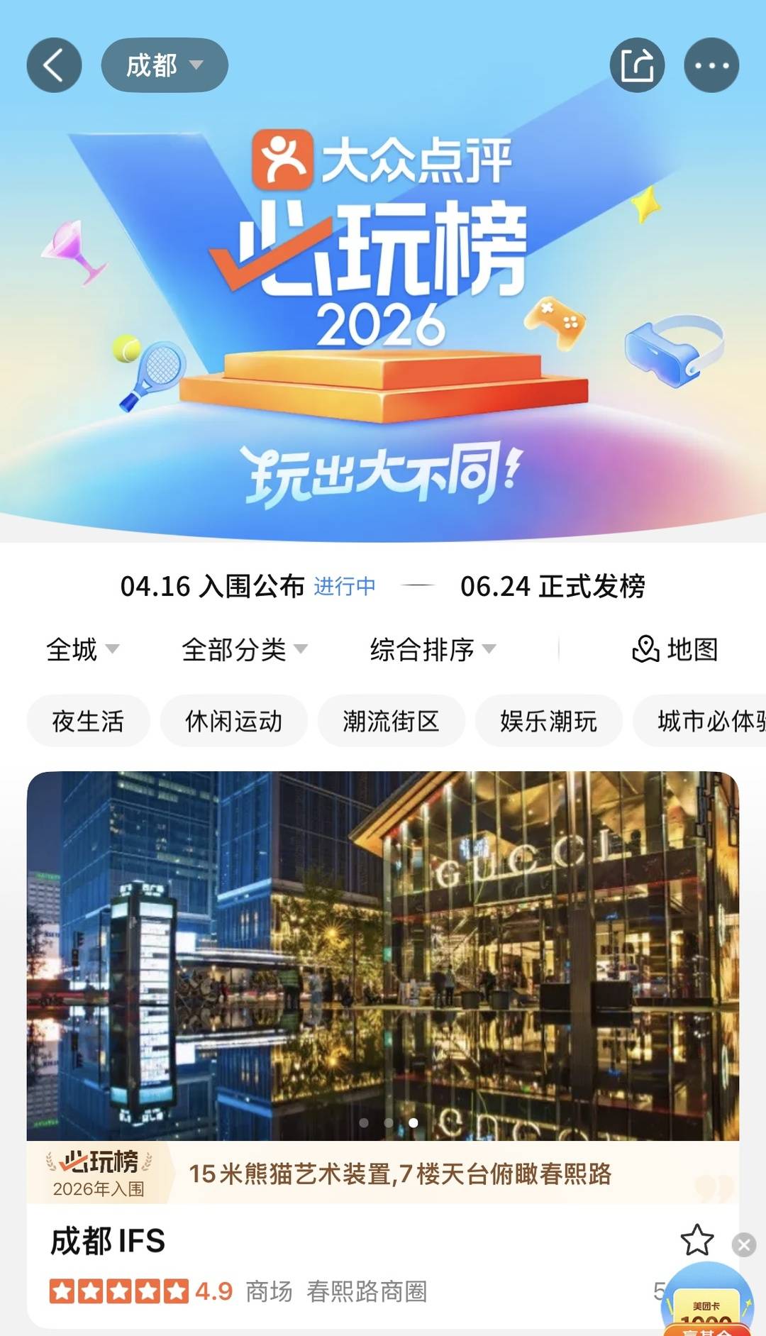 “点评用户的真实分享,是AI生成内容无法替代的。”榜单负责人称,“越是难在别处复刻的体验,也就越值得入围‘必玩榜’。”据其介绍,即日起,2026“必玩榜”进入入围公示期,并将于6月24日正式发榜。